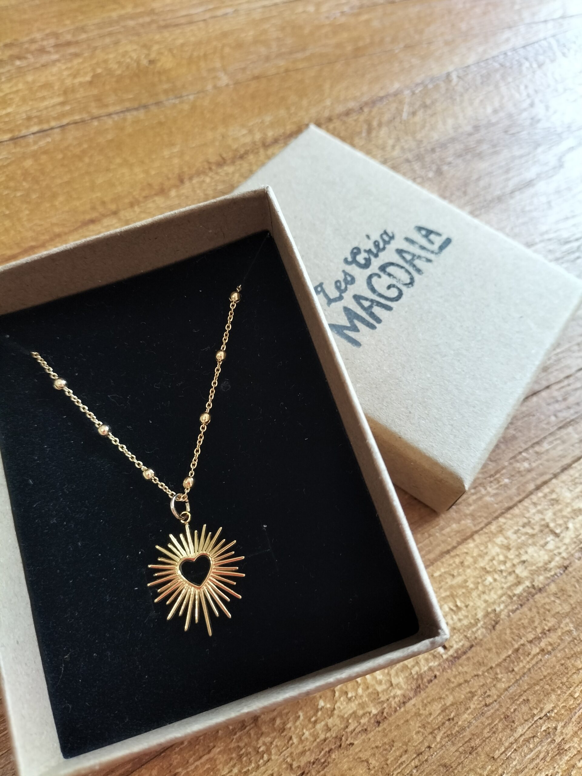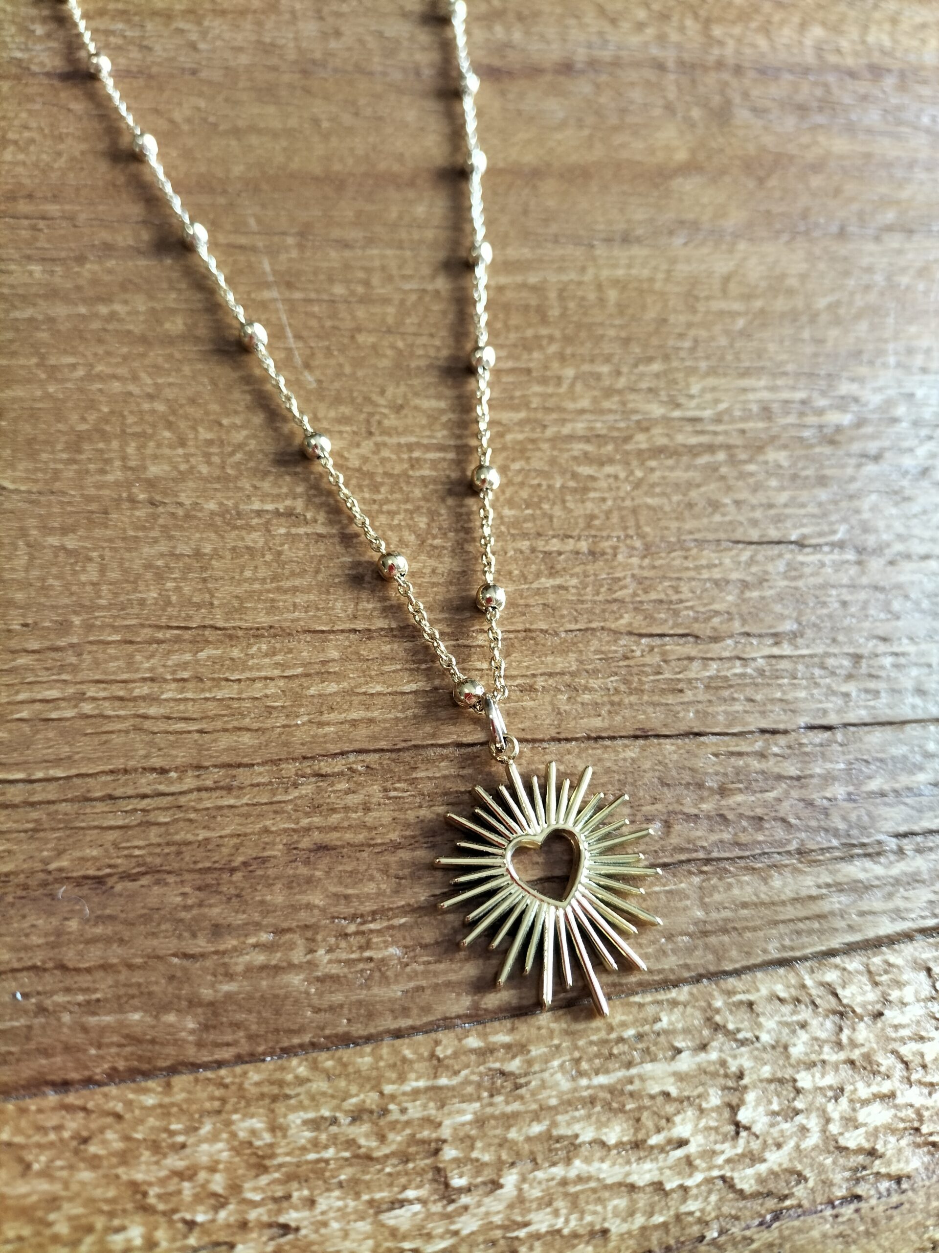 Collier composé d’un pendentif cœur en acier inoxydable monté sur une chaine à boule plaquée or.